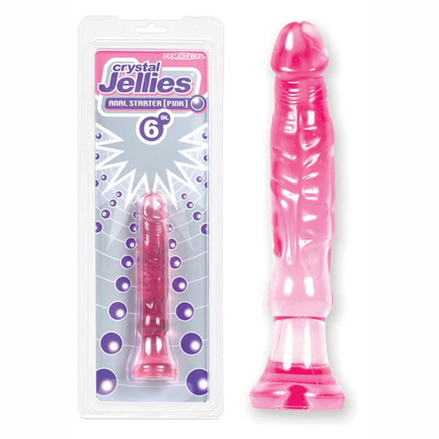 Le Crystal Jellies Anal Starter, de Doc Johnson, est un outil érotique, doux et flexible, pour le plaisir anal. Son gland réaliste et son membre mince et veiné sont parfaits pour les débutants. Sa base évasée en fait un jouet idéal pour les douces activités anales. Chaque chambre à coucher devrait avoir ce classique! Fait de matériel sans phtalate, incluant la formule antibactérienne Sil-A-Gel de Doc Johnson
