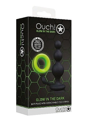 BEADS BUTT PLUG WITH COCKRING - GLOW IN THE DARK - OUCH!