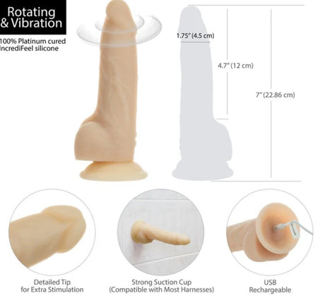 NAKED ADDICTION - 7'' ROTATING & VIBRATION DILDO WITH REMOTE CONTROL - VANILLE
