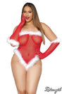 - Body résille sans coutures avec bordure en fausse fourrure duveteuse, décolleté bustier et dos string.