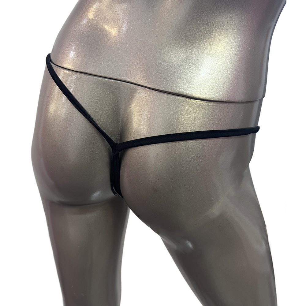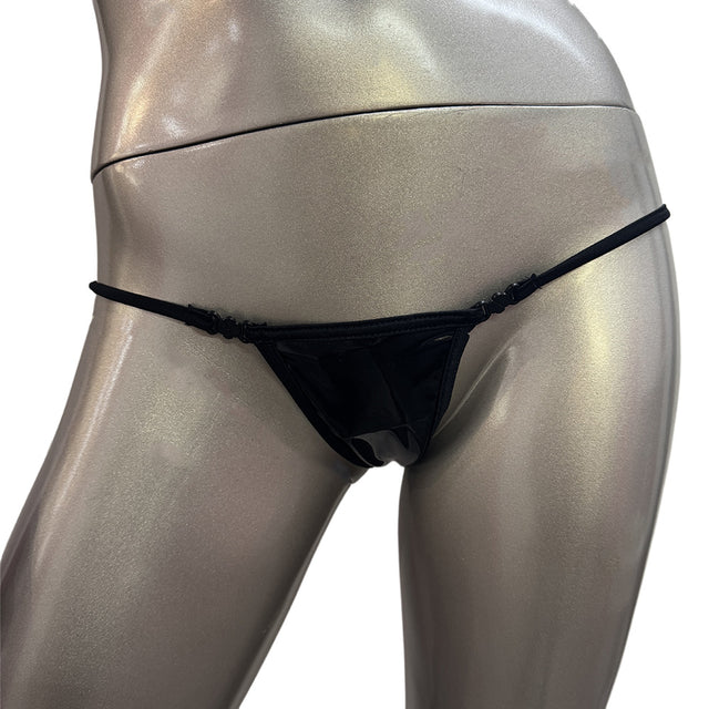 Ajoutez une touche audacieuse et sensuelle à votre collection de lingerie avec notre string ultra-minimaliste en PVC brillant. Conçu pour mettre en valeur vos courbes avec audace, ce modèle associe finesse des bretelles élastiques à l'effet vinyle irrésistible du PVC.