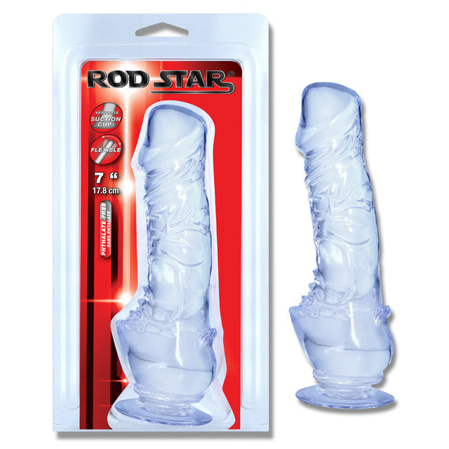 Rod Star®, flexible, doux, durable, des années de bonheur et de bon fonctionnement. Sans phtalate ni latex et sans odeur, il est doux et sécuritaire pour votre peau. Assurez-vous d’avoir un authentique produit Rod Star®; pour la qualité, la fiabilité,la sécurité, le confort et votre entière satisfaction. Il a une longueur totale de 7’’ (17.8 cm), un diamètre de 1.6’’ (4 cm) ainsi qu’une ventouse à sa base. Un modèle translucide clair, spécialisé pour chatouiller le clitoris de plus près.
