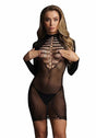 Petite robe en résille au décolleté ouvert et sexy, avec détails en bas. Manches longues et col montant. Convient aux tailles S à XL.