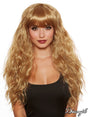 Peruque longue à effet de place ondulé ajustable avec filet de soutien