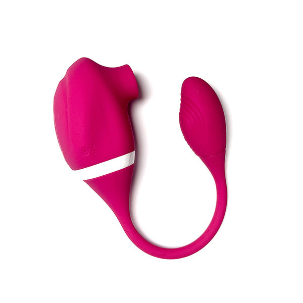 À la fois un jouet a pulsion pour le clitoris, doublé d'un mini vibrateur qui s'insère dans le vagin pour aller stimuler le point G!