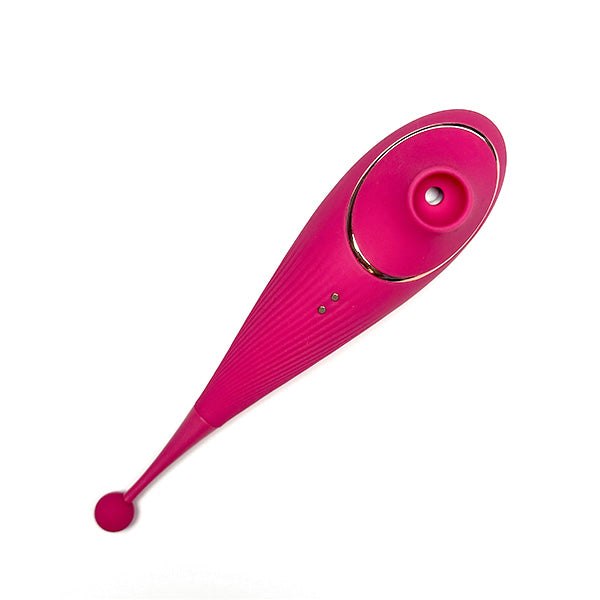 d'un coté il fait de la pulsion d'aire, de l'autre une vibration ciblé. Le coté vibration à deux embout en silicones pour différantes sensations!