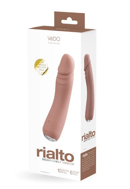 RIALTO est un véritable produit avec deux moteurs super puissants, 10 modes de vibrations et 6 niveaux d'intensité. Fabriqué en silicone doux et velouté qui semble si réel avec une tige flexible qui vous donne envie de plus en plus. Choisissez votre partenaire de plaisir et préparez-vous à jouer. Et n'oubliez pas qu'il est entièrement submersible pour que vous puissiez tous les deux vous mouiller et vous déchaîner partout où vos jeux aquatiques vous mènent.