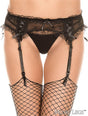 Porte-jarretelles en mesh transparente extensible brodée de coeurs avec une bordure en dentelle froncée, un lacé décoratif à l'avant et des jarretelles ajustables. (G-String non incluS)