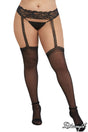 Porte-jarretelles en dentelle extensible avec des bas transparents attachés par des jarretelles fixes cousues aux bandes en dentelle (G-String non inclus)