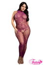 Bodystocking à col haut en filet superposé de dentelle fleurie avec un dos nageur fixe, au dos totalement ouvert et à la fourche ouverte (G-string non inclus)