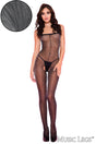 Bodystocking transparent à reflets argentés avec des bretelles en mesh froncées fixes et à la fourche ouverte (G-string non inlcus)
