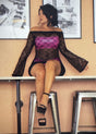 Faites tourner les têtes avec cette robe en dentelle mesh noire au style glamour et provocant. Son tissu transparent dévoile subtilement la silhouette, laissant entrevoir ce que vous choisissez d’y porter dessous.