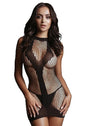 Mini robe en filet contrastant avec accent en forme de V opaque. Cette robe est très extensible et peut être portée de la taille S à XL.