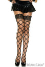 Bas en gros filet extensible à multi-sangles avec une large bande en dentelle comprenant du silicone stay up et une pointe renforcée en mini filet