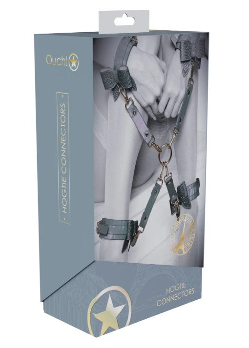 Combinez vos menottes de poignet et de cheville préférées avec ce Hogtie 4-WAY Paris Collection de Ouch!. La contention corporelle complète n'a jamais été aussi facile. Fabriqués en cuir PU, ils présentent une finition irisée sur leur matériel, leur donnant un look haute couture qui sera absolument incroyable dans n'importe quelle collection BDSM, débutants, ainsi que joueurs avancés!