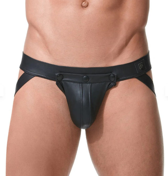 Gregg Homme présente le CRAVE. La collection en similicuir parfaitement ajustée, respirante et élégante ! Ce jockstrap Crave est doté d'une poche amovible à boutons-pression noirs et d'un cockring intégré. L'emblème Gregg Homme est embossé sur le côté droit de la ceinture de 3,8 cm.
